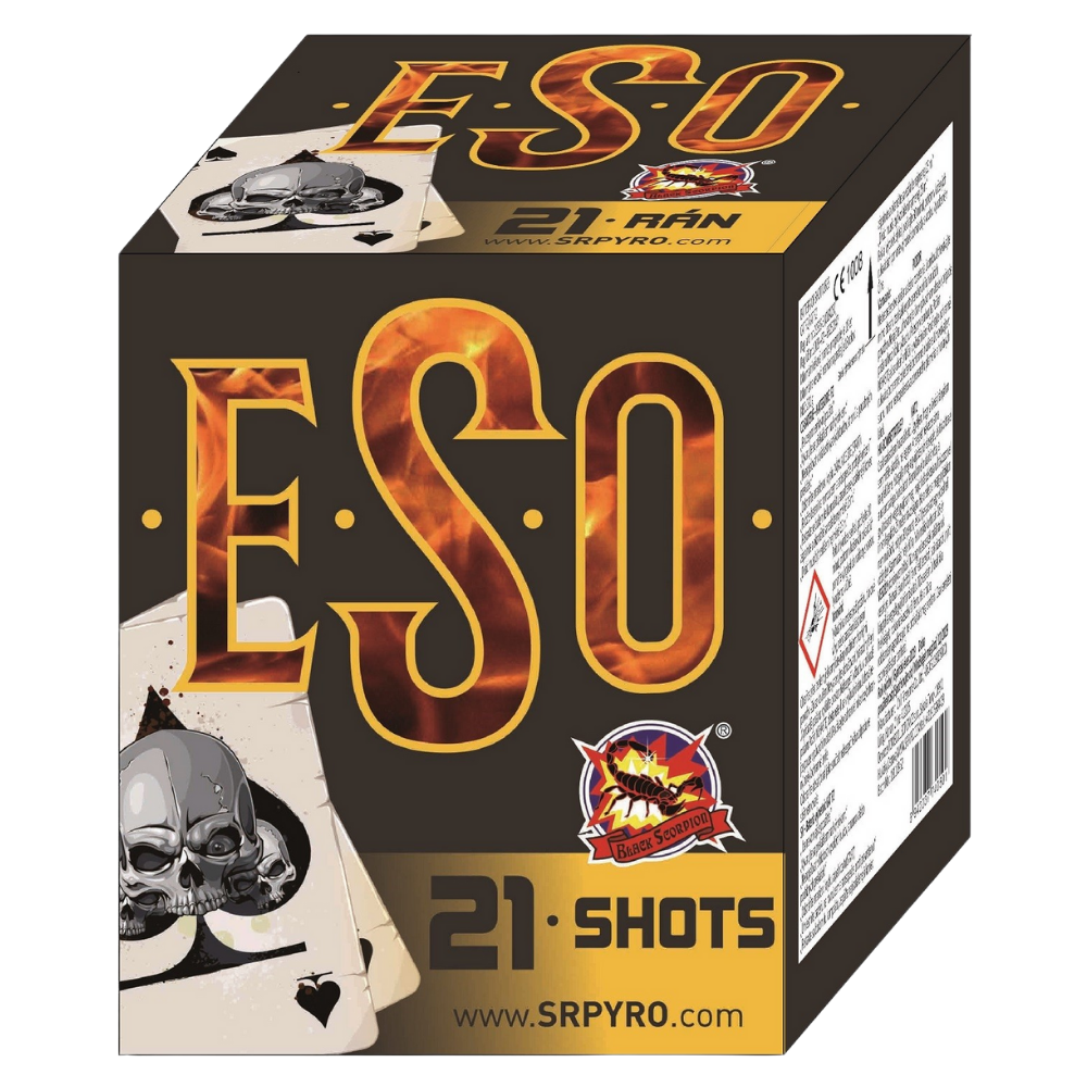 Kompaktní ohňostroj Eso je doprovázený různobarevnými efekty. Do vzduchu vypálí 21 ran ráže 25mm, celá tato barevná show trvá 25 vteřin.