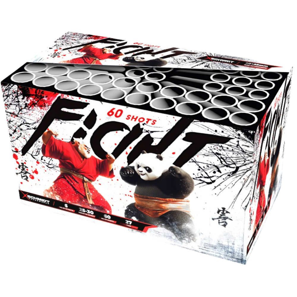 Kompaktní ohňostroj Fight je doprovázený různými efekty. Tento ohňostroj do vzduchu vypálí 60 ran ráže 20-25 mm.