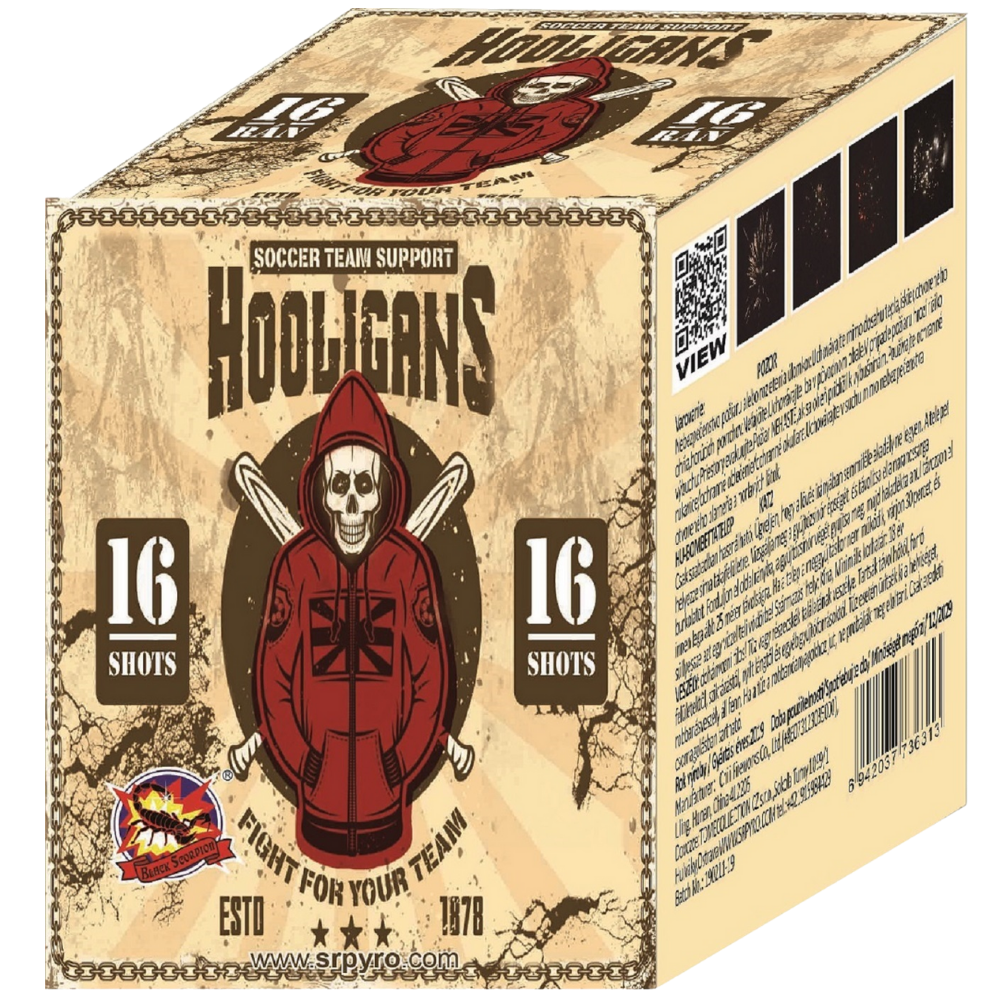 Kompaktní ohňostroj Hooligans je doprovázený různobarevnými efekty. Do vzduchu vypálí 16 ran ráže 20mm, celá tato barevná show trvá 28 vteřin.