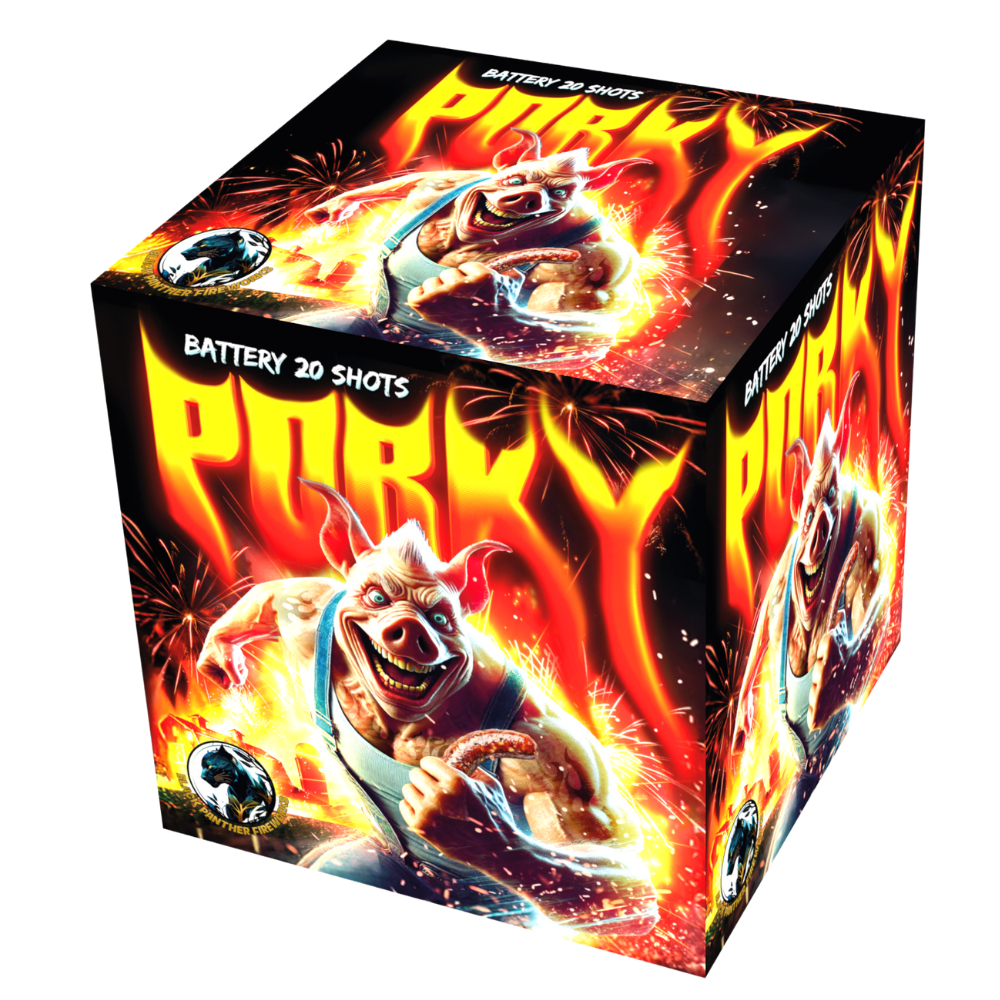 Kompaktní ohňostroj Porky je doprovázený různými efekty. Tento ohňostroj do vzduchu vypálí 25 ran ráže 25 mm.