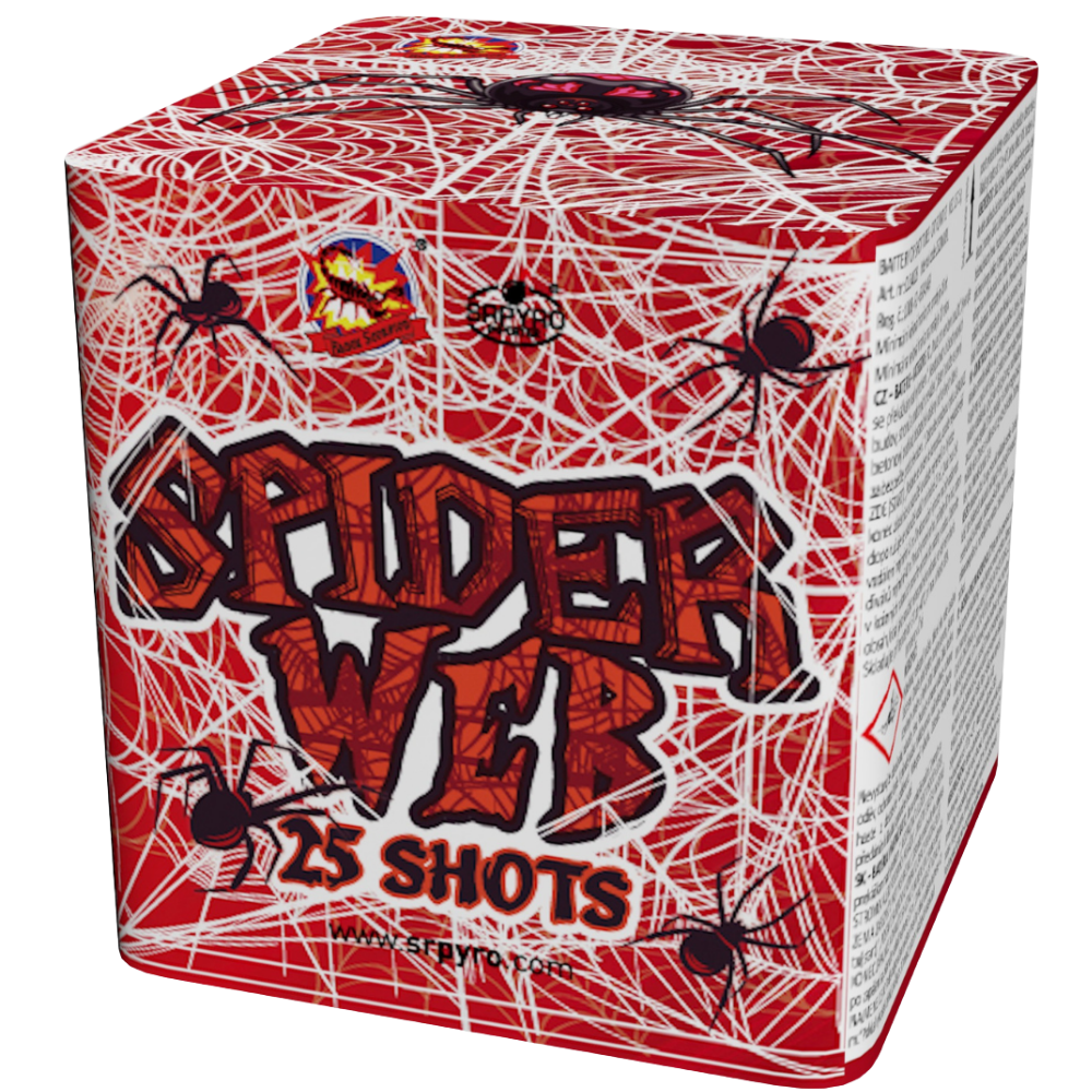 Kompaktní ohňostroj Spider Web je doprovázený mnoha různobarevnými efekty. Do vzduchu vypálí 25 ran ráže 20 mm, celá show trvá 25 vteřin.
