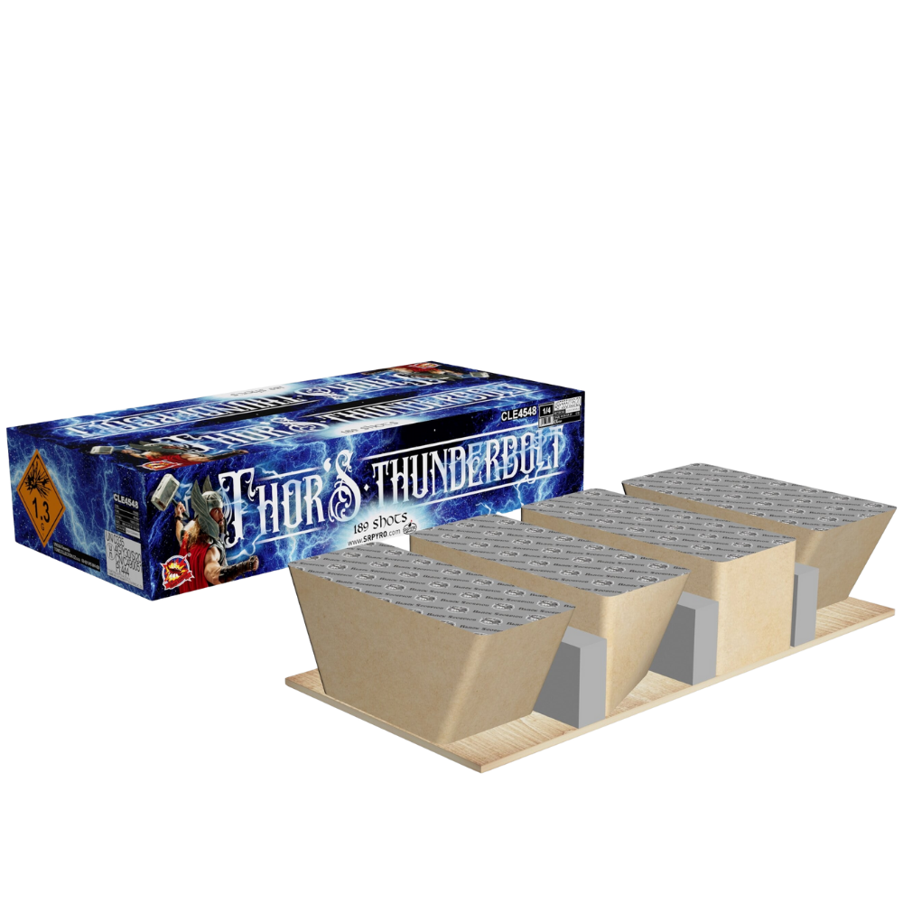 Kompaktní ohňostroj Thors Thunderbolt je doprovázený mnoha různobarevnými efekty. Do vzduchu vypálí 189 ran ráže 20 a 25 mm, celá show trvá 83 vteřin.