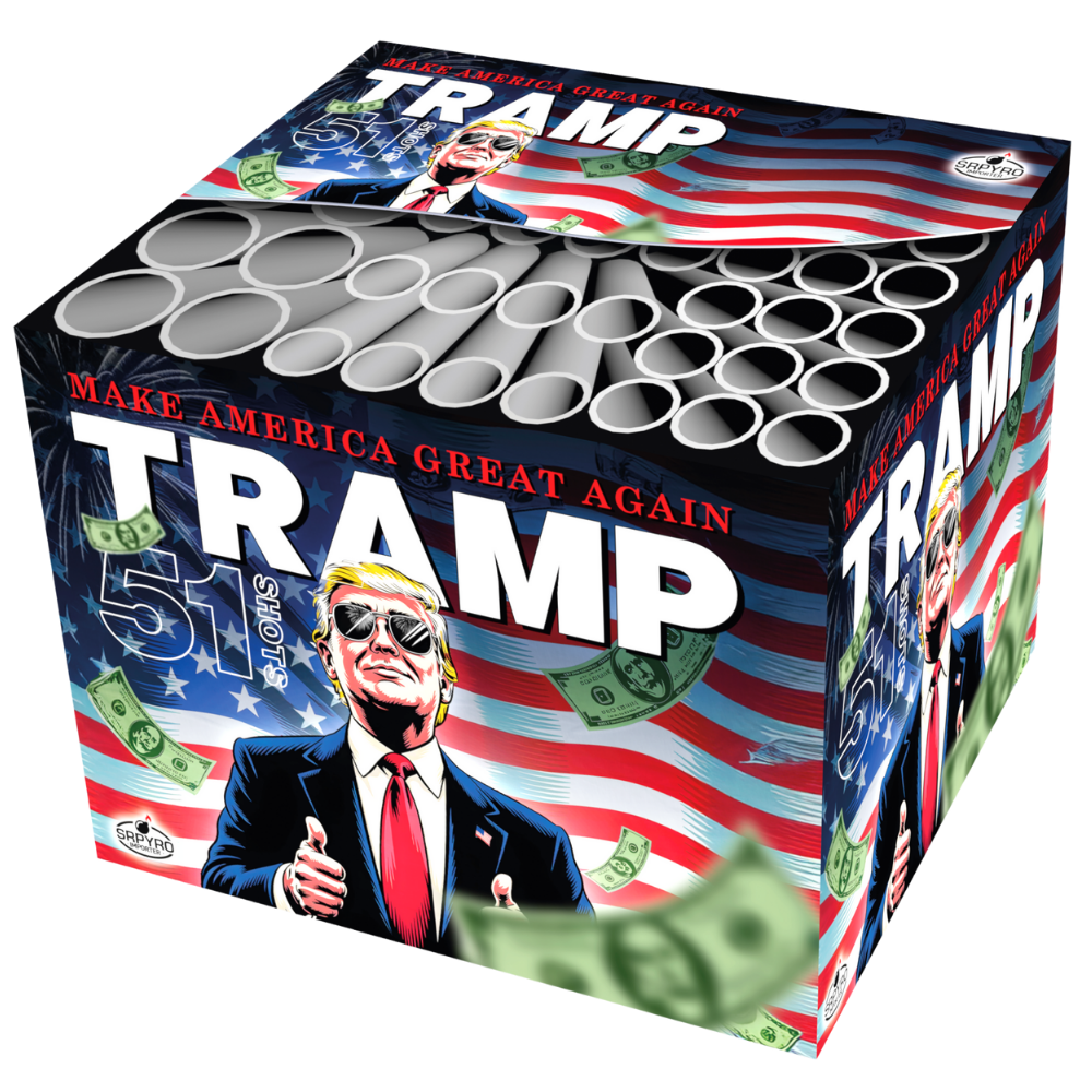 Kompaktní ohňostroj Tramp je doprovázený různými efekty. Tento ohňostroj do vzduchu vypálí 51 ran ráže 25-38 mm, celá show trvá 65 vteřin.