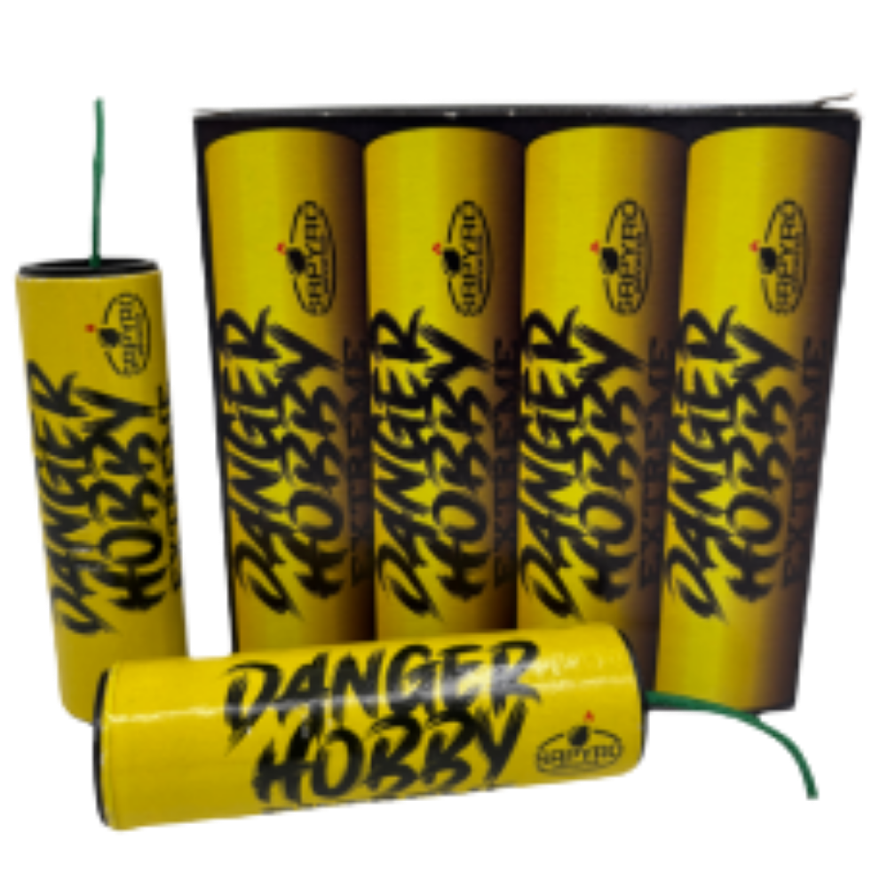 Toto balení zábavní pyrotechniky obsahuje 4 kusy extra silných petard se zápalní šňůrou.
